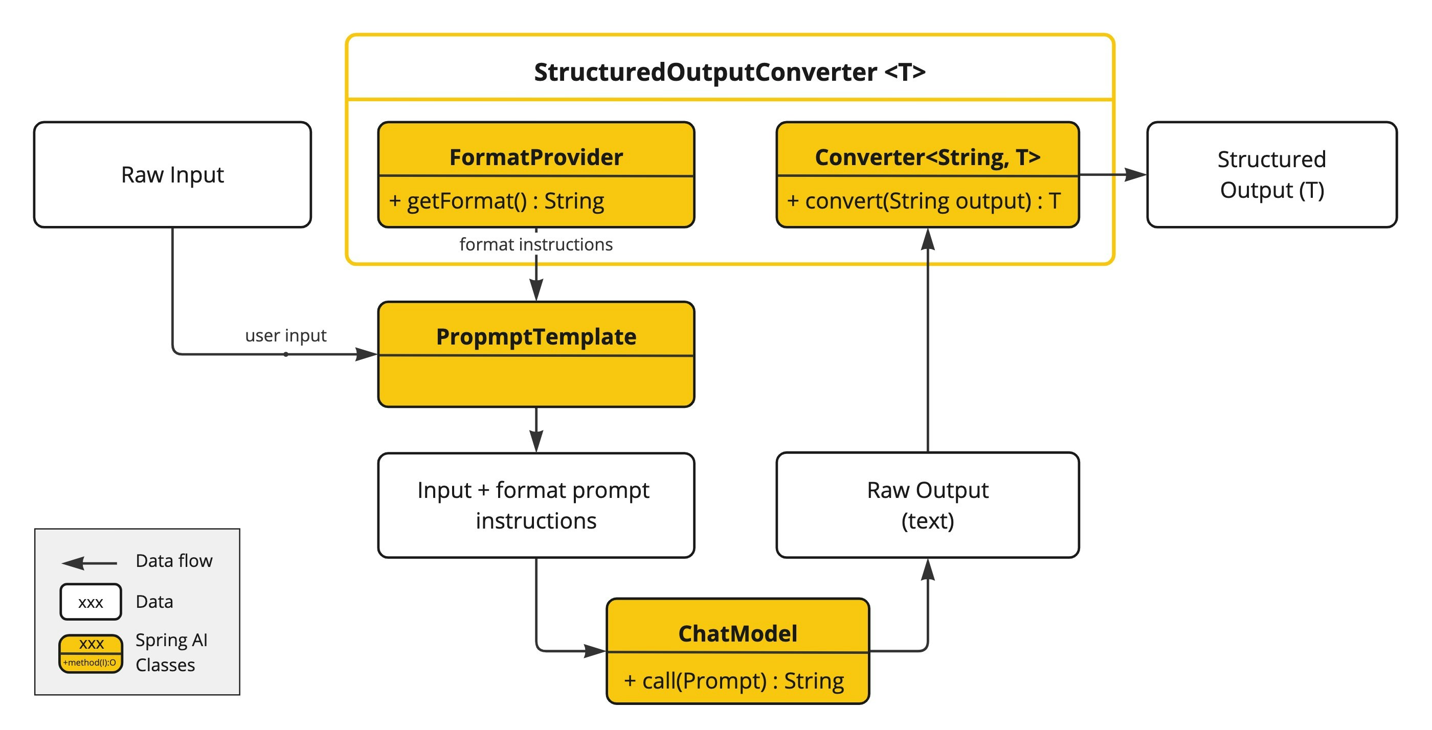 后者是前者的直接替代品,提供相同的功能。更改的原因主要是命名,因为没有进行任何解析,同时也与 Spring org.springframework.core.convert.converter 包保持一致,带来了一些改进的功能。Structured Output Converters 帮助将 LLM 输出转换为结构化格式。